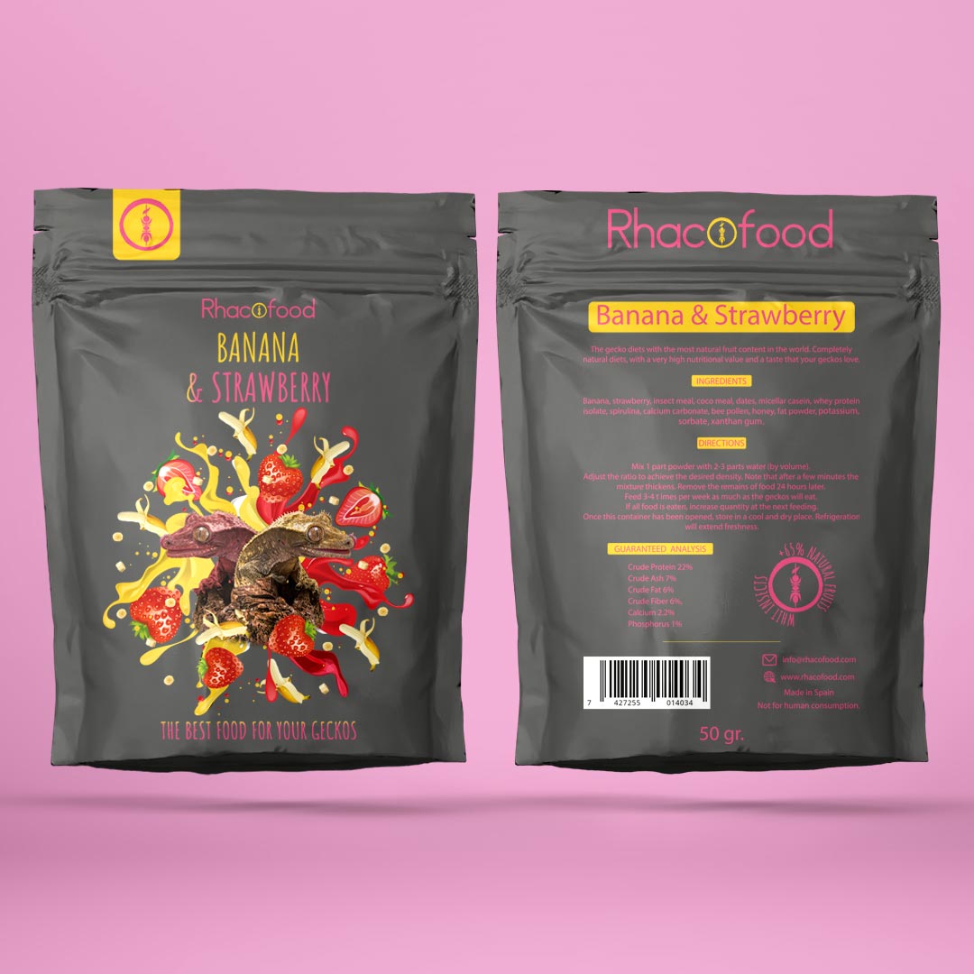 This combination of attractive flavors is irresistible to New Caledonian geckos. Two classics, strawberry and banana, which with the rest of the ingredients form a complete diet for your geckos.