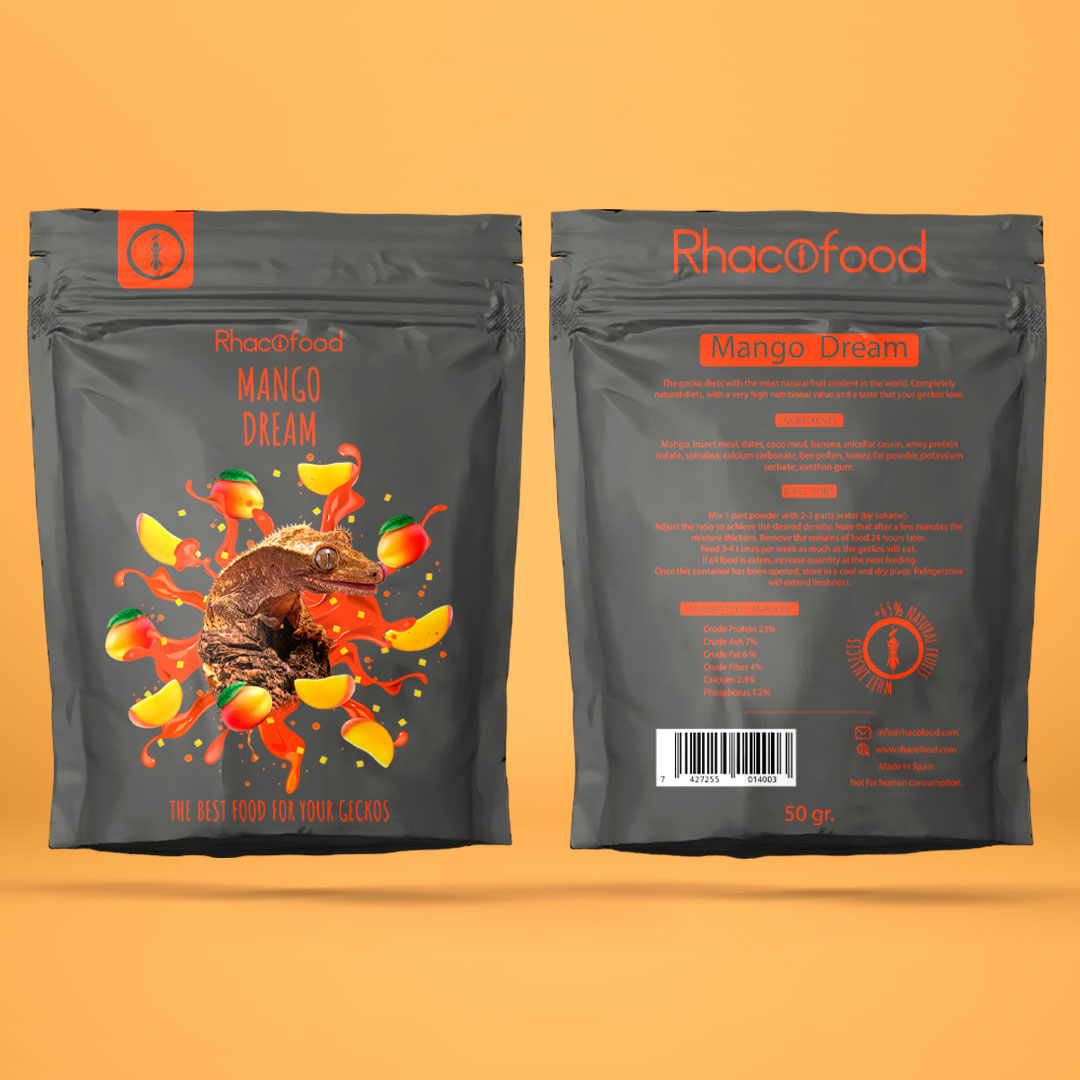 With the delicious flavor of mango, no gecko will be able to resist this porridge. This complete feed is made with a large number of insects, ensuring a diet rich in protein. A mixture carefully elaborated to cover the nutritional needs of geckos. Ideal for gargoyle geckos, crested geckos, leachianus, chahoua, day geckos, etc
